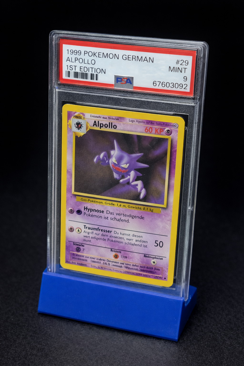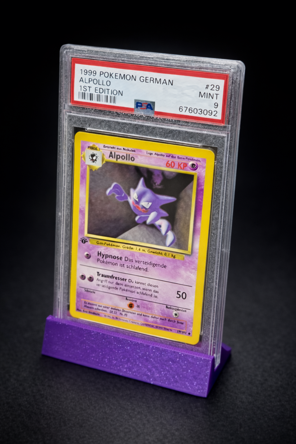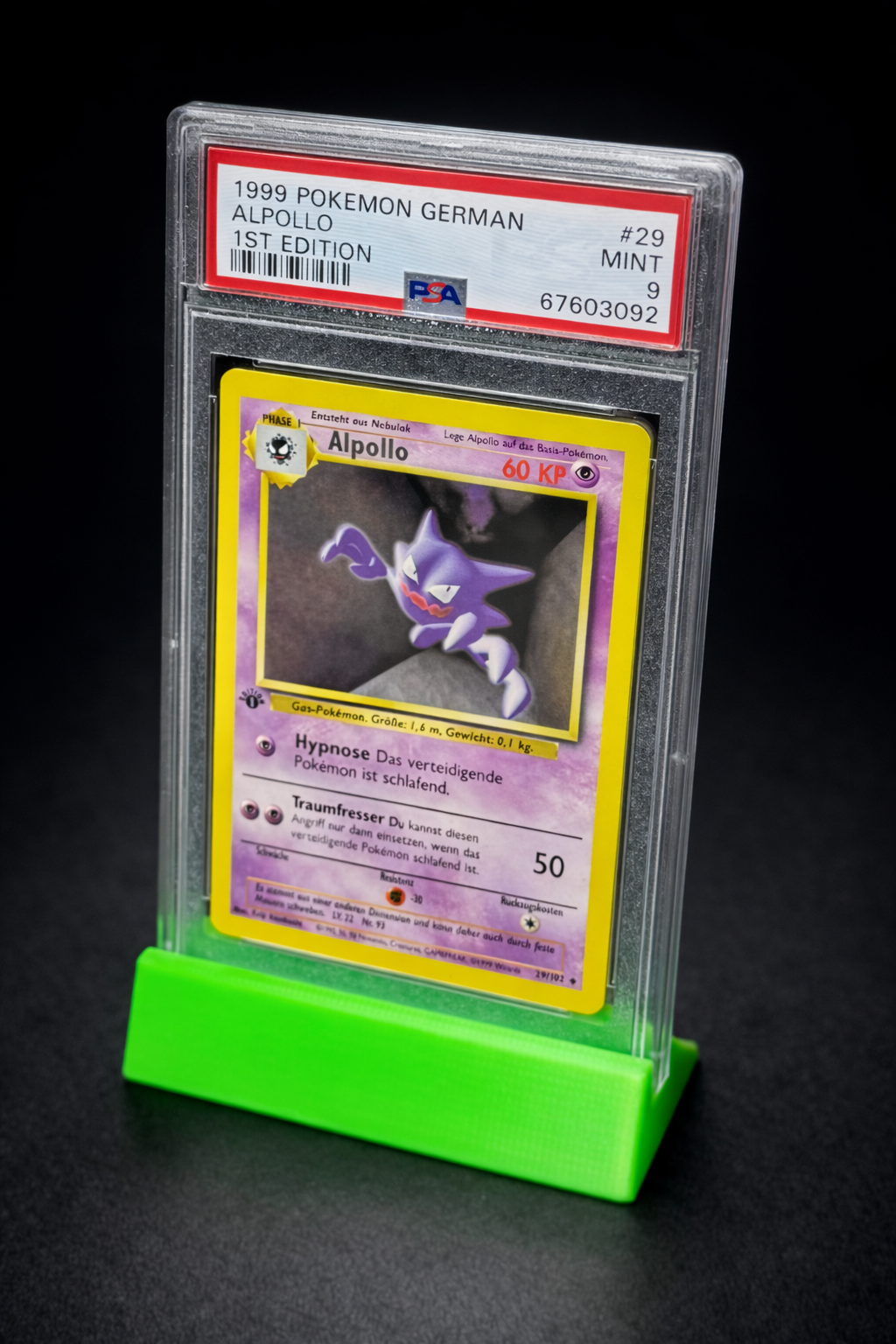 Präsentiere deine gegradeten Sammelkarten sicher und stilvoll mit unserem hochwertigen 3D-gedruckten Kartenhalter – entwickelt speziell für Trading Card Games wie Pokémon, Yu-Gi-Oh! und viele mehr.